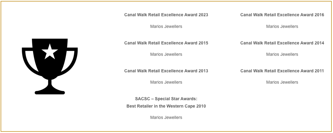 We strive to be ‘jewellers of exception’ in everything we do and we extend a welcoming atmosphere to all our customers, inviting them to be part of the Marios Jewellers family.